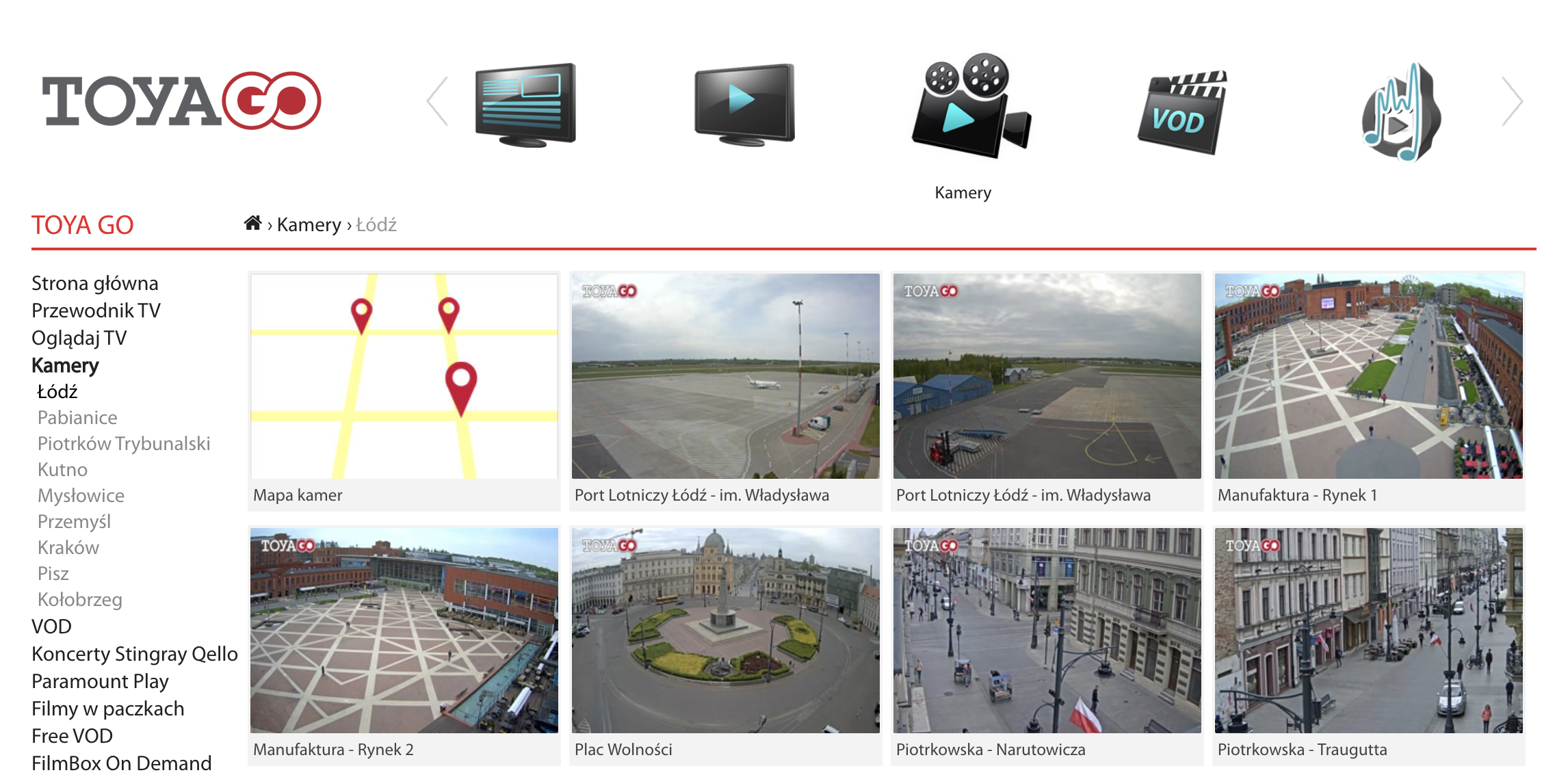 TOYA is one of the largest CATV operators in Poland. One of the major challenges the company has faced so far is providing the people of Łódź and surrounding cities with live traffic news and an overview of the biggest crossroads and the most critical areas of their city. TOYA looked for solutions to overcome limitations related to the traditional TV transmission and enable sharing video streaming in mobile apps (the iOS and Android platforms), on websites (PC and macOS), and in CATV dedicated applications.