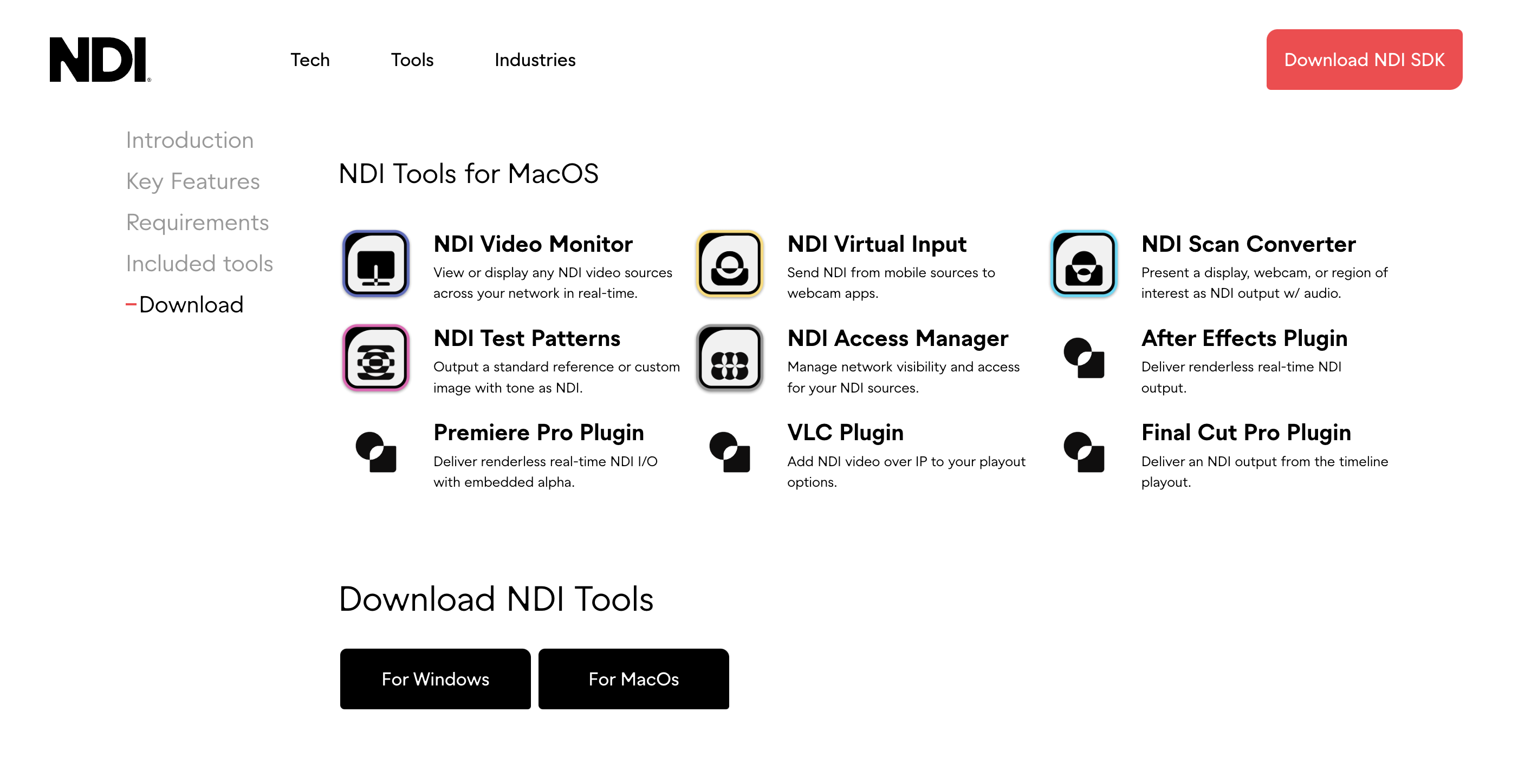 Next, visit ndi.tv and download the NDI Tools, which is a free set of Windows/Mac apps from Newtek, the company that created NDI.