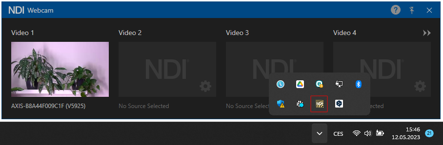 Launch the NDI Tools on your computer and select "NDI Virtual Input" (for Mac) or "NDI Webcam" (for PC). This will enable you to choose from all the Axis cameras with the NDI Plugin activated on your local network. If you're using the PC version, you can use up to four webcams simultaneously from any NDI sources.