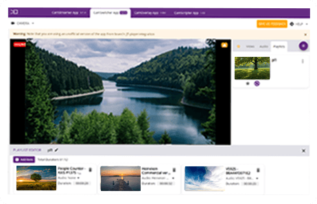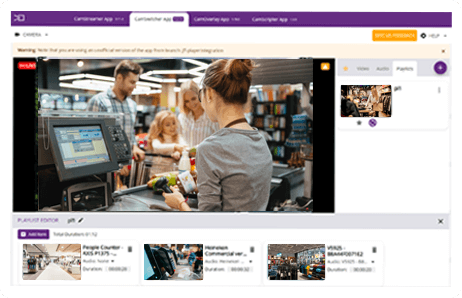CamSwitcher App is an ACAP application running on your camera. It can switch among up to five AXIS network cameras and video clips saved on the camera's SD card. Choose master audio and generate a single output video stream in real-time. Switching can be manual, automatic via predefined playlists, or triggered via API commands.