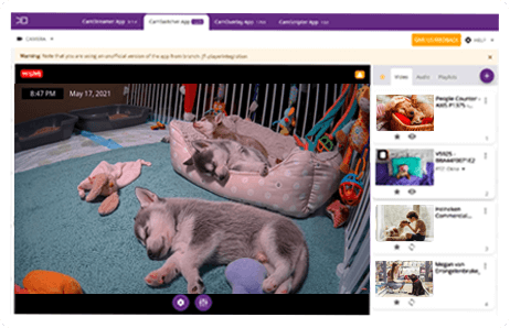 CamSwitcher App runs on your IP camera without any extra hardware required. The app fetches RTSP video streams from the connected cameras and switches among them. Additionally, you can mix in audio and video clips stored on an SD card. The mixed video feed is ready to be easily streamed via CamStreamer App.