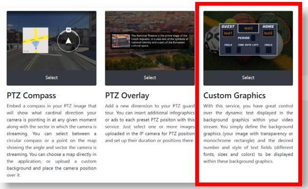 3. In the CamOverlay App, select the Custom Graphics service.