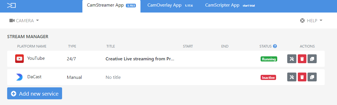 1. In the STREAM MANAGER, click on the ADD NEW SERVICE button.