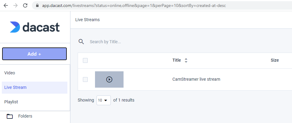 4. Press the ADD+ button in the top left corner and choose the LIVE STREAM option and than simply create your stream.