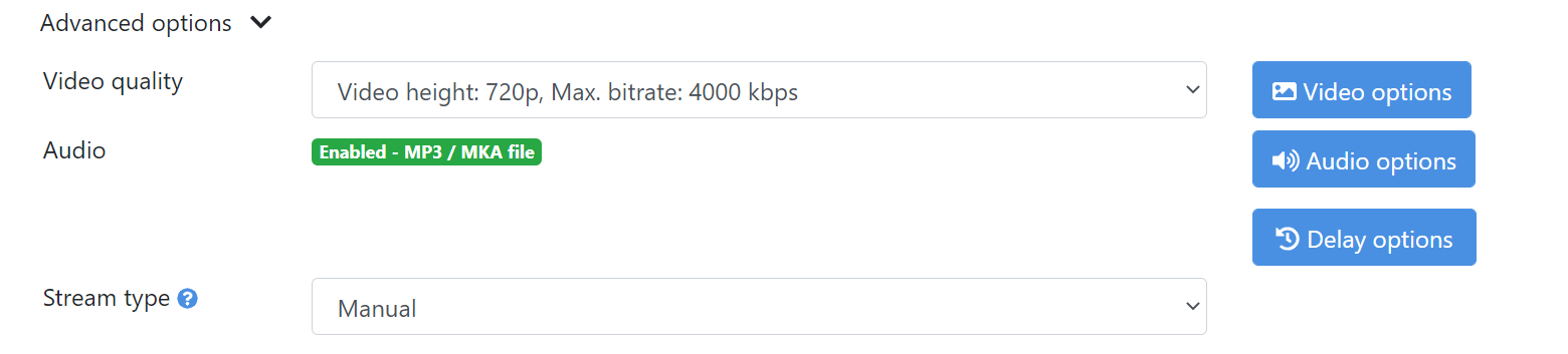 11. Launch the stream via button „Start“ and you are online“. Other ways of triggering can be changed in Trigering options. Take a look here.