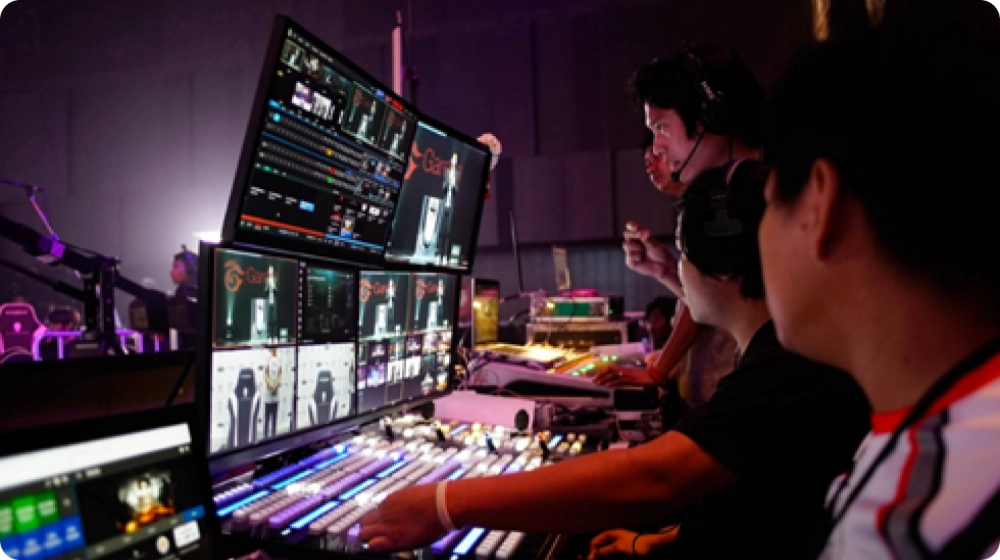 In-camera mixing studio, controls video output from up to 5 cameras, in addition with your own video clips and audio.