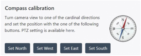 Compass solution from CamStreamer company works smoothly on Axis cameras with ARTPEC-6 processor and higher (older processors do not have enough power to draw graphics). Perfect cameras for this application are Axis Q6215-LE and Axis P5655-E. Compass display current direction of camera view and level of current zoom (shown on sector width).